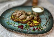 Драники с купатами и сметаной