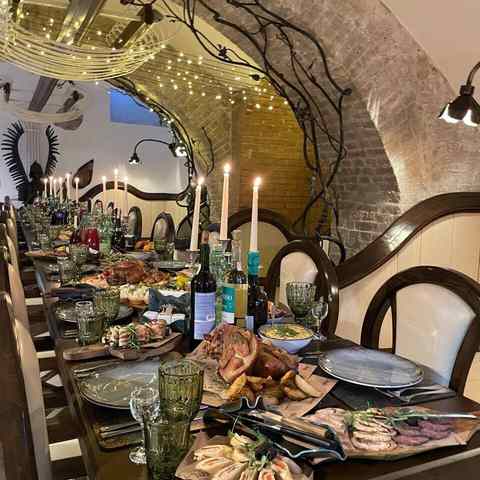 Ресторан «Княжеский двор» приглашает отметить Новый год 2026 в подземельях Мирского замка. Вас ждёт тёплая атмосфера, праздничное меню и уютные залы — Красный и Белый, где можно провести банкет или фуршет до 42 гостей.